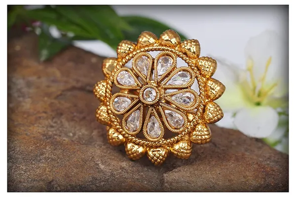 White Gold Plated & White St1 Studded Adjustable Finger Ring