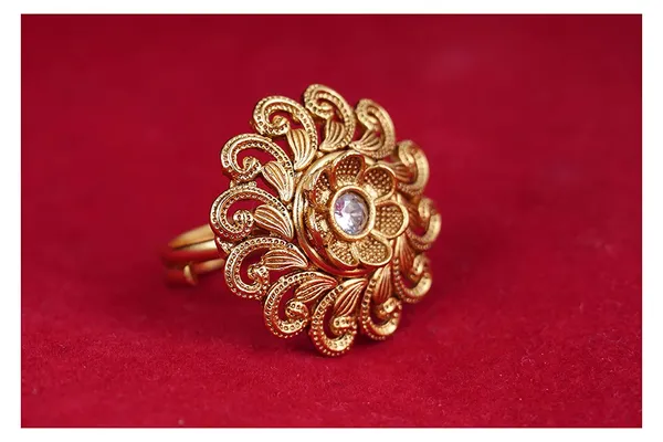 White Gold Plated Floral White St1 Studded Adjustable Finger Ring