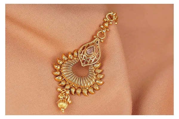 White Gold Plated White St1 Studded Mango Design With Drop Dangler Mang Tik..More