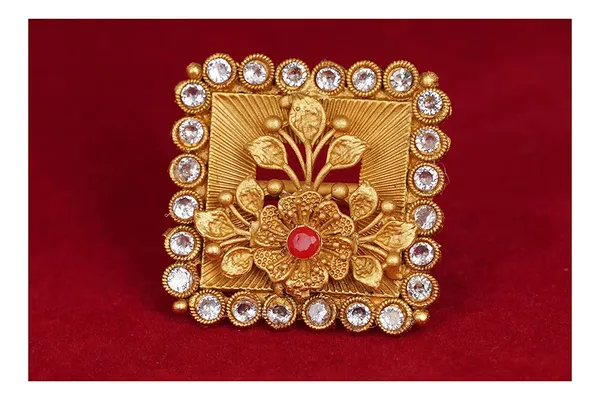 White Matte Gold Plated Floral Leaf Design Adjustable Finger Ring
