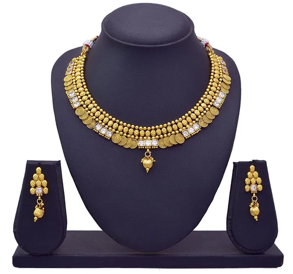 White Spiral Jalebi 1 Gm Gold Plated Cz American Diamond Necklace Set With ..More