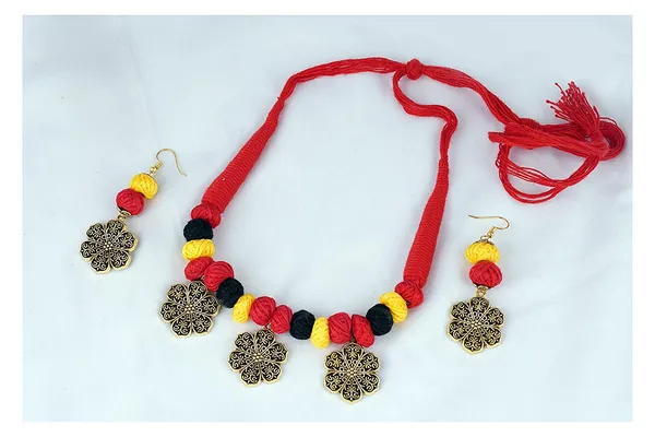Yellow & Black Gold German Silver Oxidized Cotton Beads With Cotton Adjusta..More