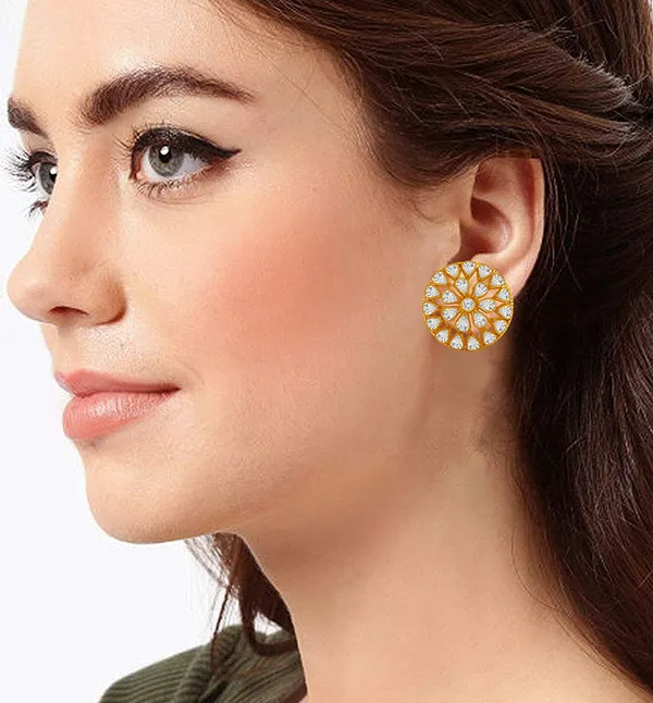 JFL - Jewellery for Less Ethnic Gold Plated Cz American Diamond Polki One Gram Gold Plated Stud Earrings and Girls