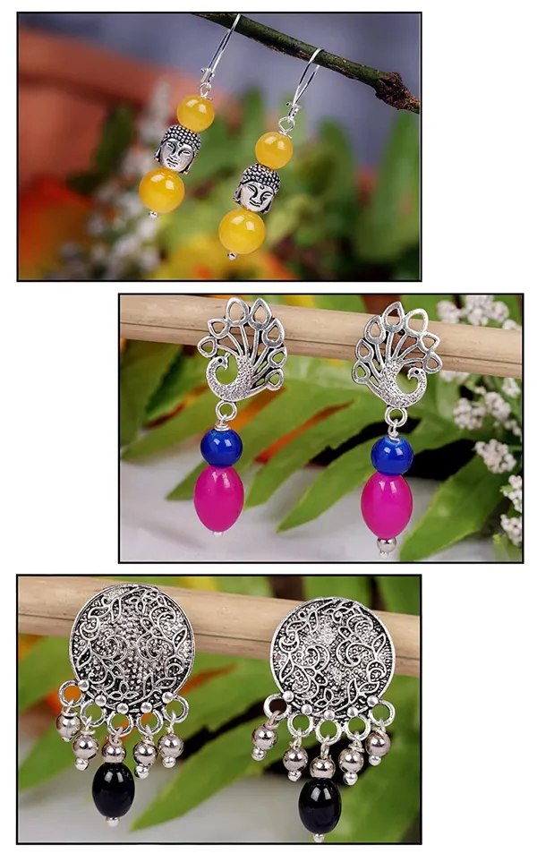 Yellow,Black,Pink Oxidised Silver Plated Handmade Beaded Dangler Earring