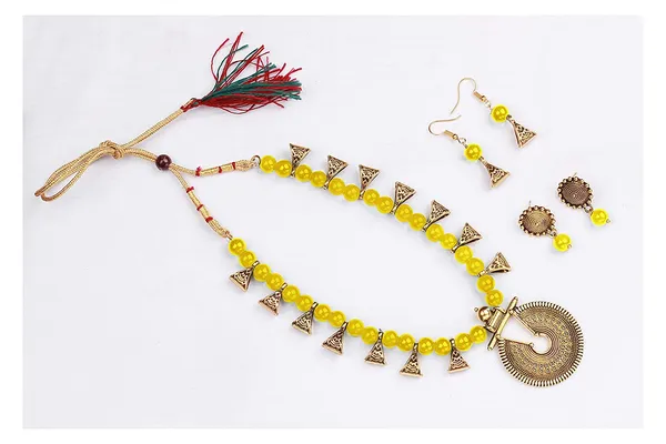 Yellow Gold Oxidized Combo Of 2 Earrings And Beaded Necklace Set With Adjus..More