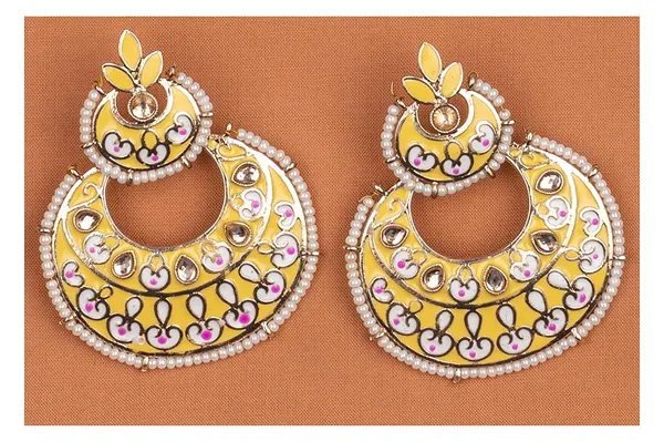 Yellow Gold T1 Meenakari Pearl And Cz St1 Studded Chandbali Earrings