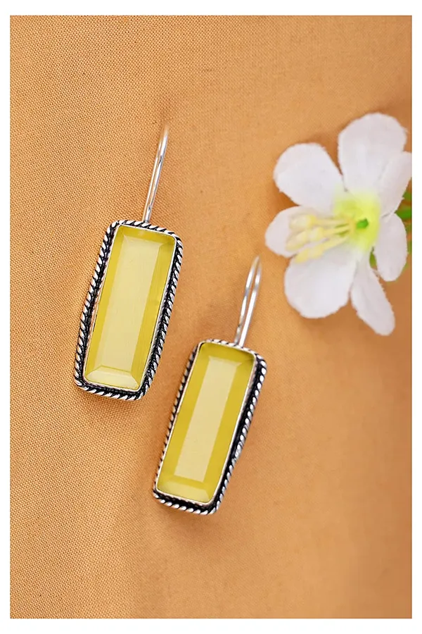 Yellow Oxidized Silver Plated Rectangle Shape Crystal Earrings